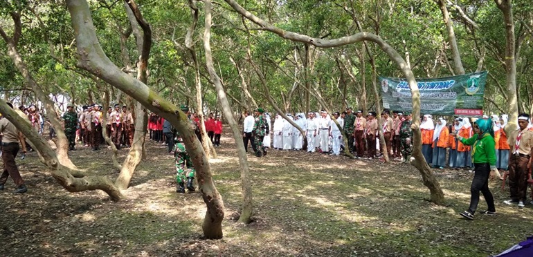 lBC, Serang - Masyarakat pesisir tumpah ruah di kawasan hutan mangrove, Kampung Brangbang, Desa Lontar, Kecamatan Tirtayasa, Kabupaten Serang pada Selasa, 15 Mei 2018. Masyarakat pesisir yang berprofesi sebagai nelayan, petani tambak dan pelajar di desa tersebut mengikuti apel siaga konservasi dan penanaman mangrove di zona kritis yang digagas aktifis lingkungan.