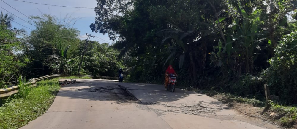 Dengan kondisi kerusakan yang saat ini terjadi. Untuk kendaraan roda empat harus terhenti dahulu apabila dari arah yang berlawanan terdapat kendaraan. Paslanya, jalan yang amblas memang sudah tak lagi bisa dilalui oleh kendaraan roda empat.