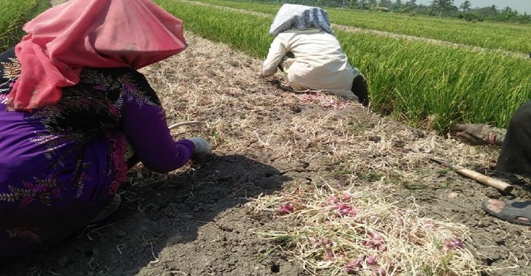“Tentunya ini memberikan kerugian, tapi daripadi dibiarkan dilahan tentunya akan terkena resiko puso. Jadi, mereka petani memilih panen bawang merah yang masih muda,”jelasnya. Seraya menyebutkan, jika mengalami puso tentunya bukan hanya kerugian materi dibutuhkan benih dengan nilai uang sebesar Rp32 juta perhektarnya, juga kerugian tenaga yang sudah dikeluarkan petani pada saat menanam.