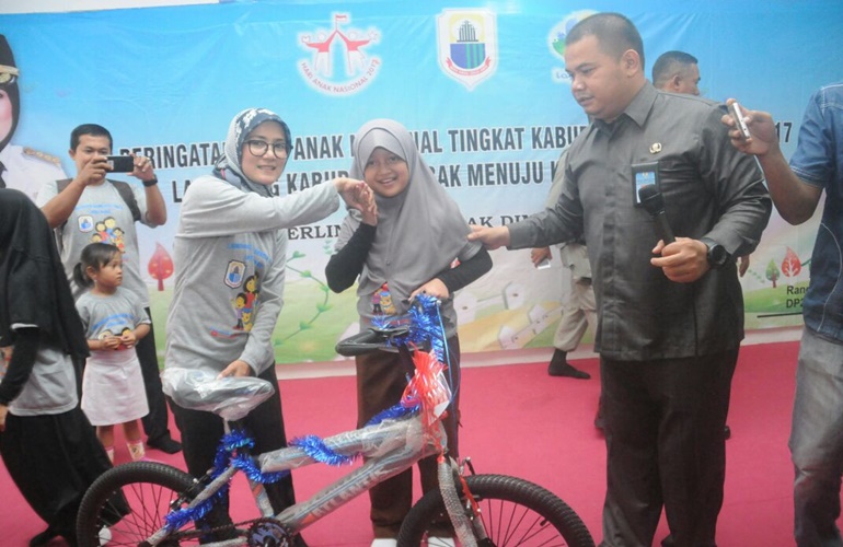 IBC, Lebak - Bupati Lebak Hj Iti Octavia Jayabaya didampingi Wakil Bupati Lebak H. Ade Sumardi beserta jajaran menghadiri sekaligus melaunching Kabupaten Lebak Layak Anak dalam rangka memperingati Hari Anak Nasional 2017 dengan mengusung tema "Perlindungan Anak Dimulai Dari Keluarga" di Pendopo Setda Lebak, Jumat 17-November-2017.