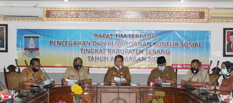 Hal itu disampaikan Asisten Daerah (Asda) I Sekretariat Daerah (Setda) Kabupaten Serang, Nanang Supriatna usai Rapat Koordinasi Tim Terpadu Pencegahan dan Penanganan Konflik Sosial tingkat Kabupaten Serang di Aula KH. Syam’un pada Selasa, 8 September 2020.
