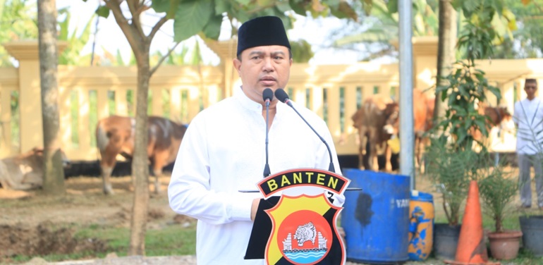 Kapolda Banten kepada wartawan mengatakan bahwa di Polda Banten melaksanakan pemotongan hewan qurban yang mana daging tersebut akan didistribusikan kepada masyarakat sekitar Polda Banten, pondok pesantren, panti asuhan dan masyarakat yang berhak menerimanya.