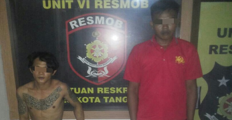 Tersangka yang diamankan yakni AN alias Blegor (26 tahun) warga Sobang, Pandeglang dan RS (27 tahun) warga Pasawaran Lampung Selatan yang mengontrak di Karawaci. Sementara dua pelaku lainnya inisial SL dan YD masih buron.