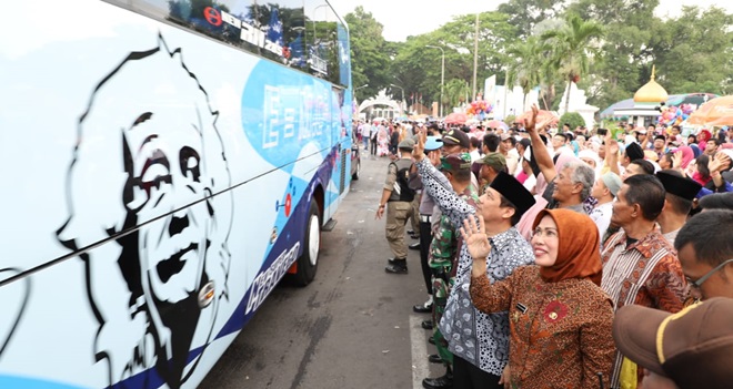 lBC, Serang – Bupati Serang, Ratu Tatu Chasnah melepas 171 jamaah Calon Haji (Calhaj) di Halaman Pendopo Bupati pada Sabtu, 4 Agustus 2018. Tatu mengatakan, bahwa Pemerintah Kabupaten (Pemkab) Serang akan memfasilitasi pemberangkatan dan pemulangan jemaah haji asal Kabupaten Serang.