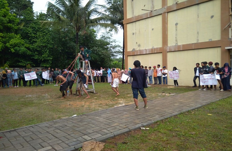 Mahasiswa menilai pembangunan gedung yang sudah berjalan empat tahun belum juga rampung, terlebih kini kondisi rusak. Tak hanya itu gedung yang dibangun bersumber dari iuran mahasiswa dan bantuan dari pemerintah terkesen tidak transparan.