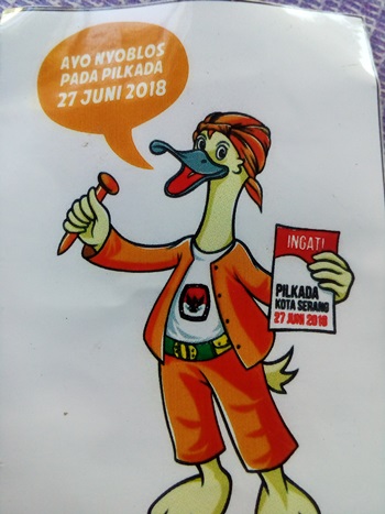 IBC, Serang - Komisi Pemilihan Umum (KPU) Kota Serang resmi memilih damiaking sebagai maskot pada Pilkada Kota Serang 2018. Pemilihan hewan damiaking atau itik dilalui dengan berbagai tahapan dari mulai kajian visual sampai dengan kajian filosofis oleh dewan juri.