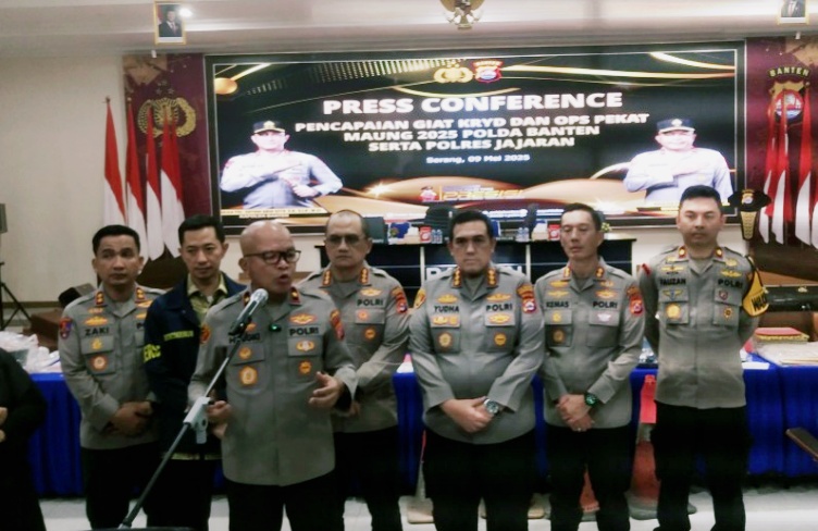 IBC, Banten - Kepolisian Daerah (Polda) Banten beserta jajaran Kepolisian Resort (Polres) dan Kepolisian Sektor (Polsek) berhasil amankan ratusan Pelaku Premanisme, hasil Operasi Pekat Maung 2025 dan Kegiatan Rutin Yang Ditingkatkan (KDYD), pada tanggal 1 Hingga 9 Mei.