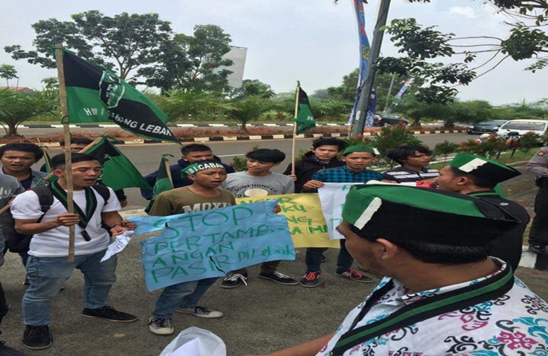 IBC, Serang-Sedikitnya 40 mahasiswa yang tergabung dalam Himpunan Mahasiswa Islam (HMI) Cabang Lebak mendatangi kantor Dinas Energi Sumber Daya Mineral (ESDM) Provinsi Banten yang berada di kawasan KP3B. Kedatangan puluhan mahasiswa tersebut guna menyuarakan aspirasi dari masyarakat yang telah jengah dengan keberadaan puluhan galian tambang pasir C di Kabupaten Lebak yang sangat menjamur.