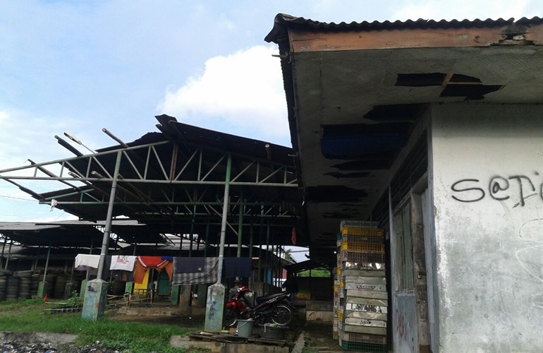 Endang mengatakan, bangunan kios mengalami kerusakan parah pada bagian atap dan plafon karena sudah pada bolong dan keropos. Sedangkan pada bagian tembok bangunan masih kokoh.