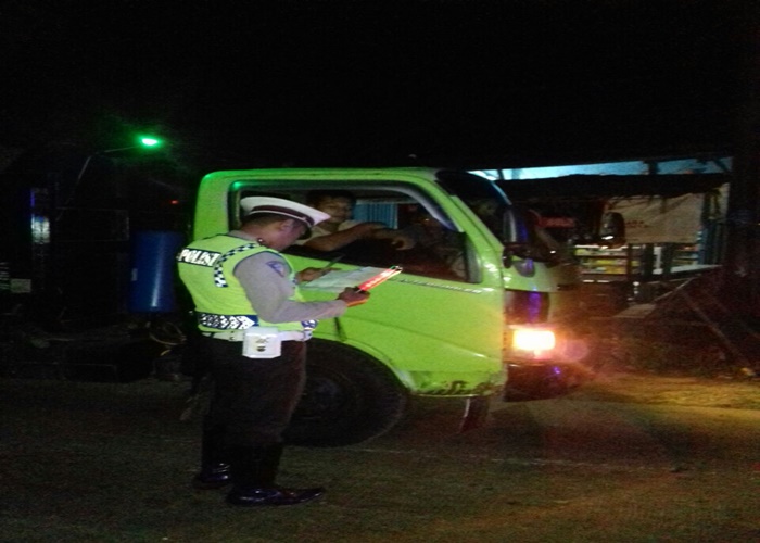 IBC, Lebak-Sebanyak 20 truk pengangkut pasir basah yang kedapatan lalu lalang di Jalan Maulana Yusuf Desa Aweh, Kecamatan Kalanganyar, Kabupaten Lebak berhasil ditilang jajaran kepolisian Satlantas Polres Lebak, Selasa malam 12-September-2017.