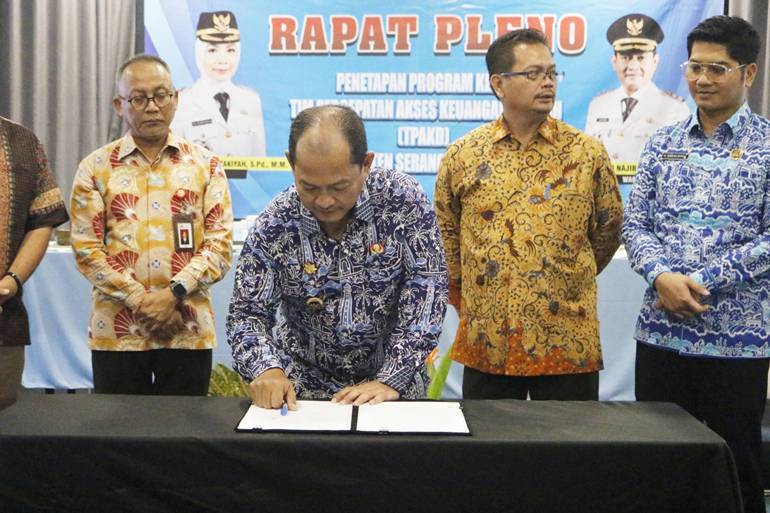 lBC, Serang - Tim Percepatan Akses Keuangan Daerah atau TPKAD Kabupaten Serang telah menetapkan sembilan (9) Program Kerja melalui Rapat Pleno. Salah satu dari 9 program kerja utama TPKAD, berkomitmen akan menguatkan literasi bagi ASN dan masyarakat agar terhindar dari pinjaman online atau pinjol dan judi online atau judol.