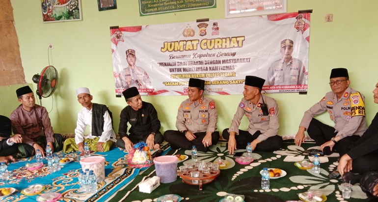 lBC, Serang - Kapolres Serang AKBP Wiwin Setiawan bersilaturahmi sambil mengadakan Jumat Curhat dengan Pimpinan Pondok Pesantren (Ponpes) Baladi Ad-Dawah, Ustadz Syaefudin serta masyarakat di Kampung Ciketek, Desa dan Kecamatan Bandung, Kabupaten Serang pada Jumat, 27 Oktober 2023.