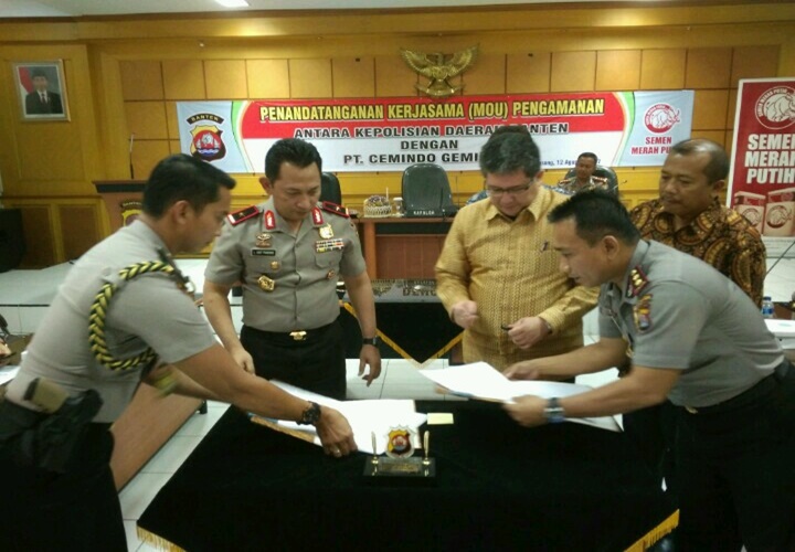 IBC, Serang- PT Cemindo Gemilang melakukan kerjasama pengamanan dengan Pihak Kepolisian Daerah (Polda) Banten. Kesepakatan ditantangani langsung Kapolda Banten Brigjen Listyo Sigit Prabowo dan Direktur Utama PT Cemindo Gemilang Andri Vincent Wenas. Kegiatan digelar di Mapolda Banten di Banjar Agung Cipocok Kota Serang, Sabtu 12 Agustus 2017.’