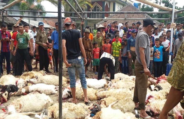 IBC, Lebak-Dalam rangka merayakan Idul Adha 10 Zhulhijah 1438 H pengurus Badan Amil Zakat dan Shodakah (Bazsdes) Desa Ciparasi, Kecamatan Sobang, Kabupaten Lebak, melaksanakan prosesi pemotongan hewan kurban.