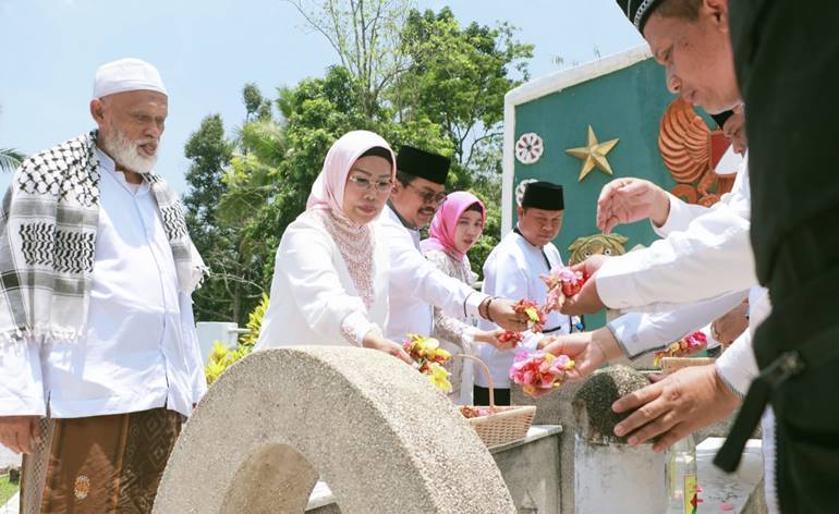 lBC, Serang - Bupati Serang Ratu Tatu Chasanah beserta jajaran melaksanakan ziarah ke Makam Brigjen TNI KH. Syam'un di Kampung Walukon, Desa Kamasan, Kecamatan Cinangka pada Senin, 7 Oktober 2024. Ziarah ke makam Bupati Serang pertama ini merupakan rangkaian Hari Ulang Tahun (HUT) ke-498 Kabupaten Serang yang jatuh pada 8 Oktober 2024.