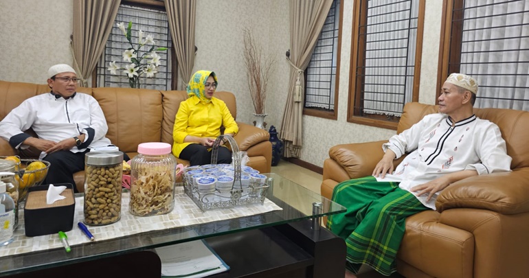 lBC, Serang - Bakal calon gubernur Banten Airin Rachmy Diany berkesempatan bersilaturahmi dengan tokoh masyarakat Banten KH. Embay Mulya Syarief di Kota Serang, Senin malam (13/3/2023). Silaturahmi penuh kekeluargaan layaknya seorang kakak dan adik yang sudah lama tidak bertemu.