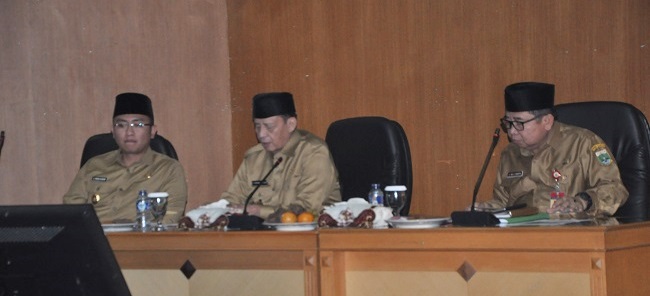 lBC, Serang - Gubernur Banten Wahidin Halim memimpin langsung rapat Evaluasi Pelaksanaan Pembangunan Infrastruktur Daerah Pemerintah Provinsi Banten Tahun Anggaran 2018, di ruang aula Badan Perencanaan Pembangunan Daerah (Bappeda) Provinsi Banten, KP3B, Kecamatan Curug, Kota Serang pada Senin, 6 Agustus 2018. Gubernur memimpin rapat yang merupakan bagian dari evaluasi kinerja setiap OPD didampingi Wakil Gubernur Banten Andika Hazrumy dan Pelaksana harian (Plh) Sekda Ino S Rawita.