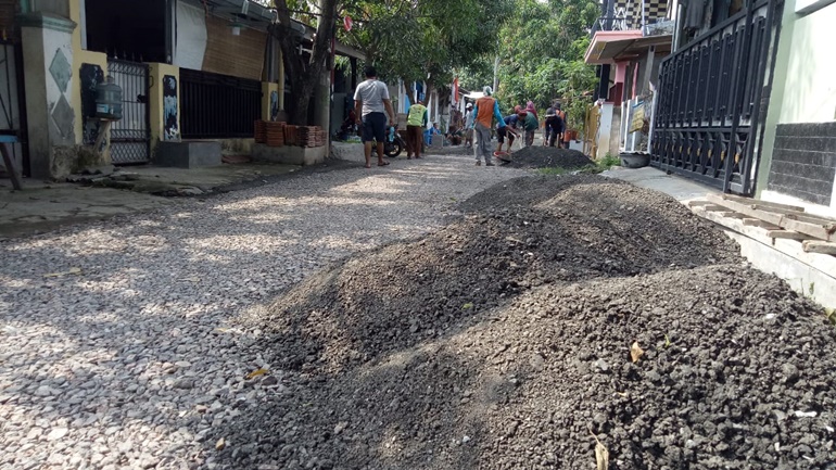 Warga pun, kata Zahid selama ini rutin bergotong royong dengan menambal jalan yang berlubang dengan puing puing bangunan serta pasir sisa bangunan. "Alhamdulillah kalau warga di lingkungan saya ini semuanya kompak, mereka rutin gotong royong, ini juga kita menyusun batu, terus mengangkut bahan material jalan pake tenaga masyarakat,"ujarnya.