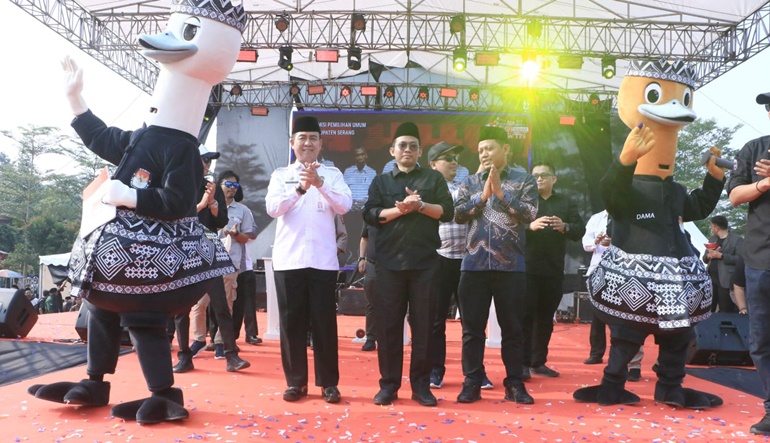 lBC, Serang - Komisi Pemilihan Umum (KPU) Kabupaten Serang resmi meluncurkan atau Launching Maskot Dama Dami atau Datang Bersama Datang Memilih dan Jingle Pemilihan Bupati-Wakil Bupati (Pilbup-Wabup) Serang Tahun 2024 di Alun-alun Kecamatan Tunjung teja pada Rabu, 19 Juni 2024. KPU menargetkan, 70 persen lebih partisipasi pemilih pada Pemilihan Kepala Daerah (Pilkada) Serentak 2024 di Kabupaten Serang.