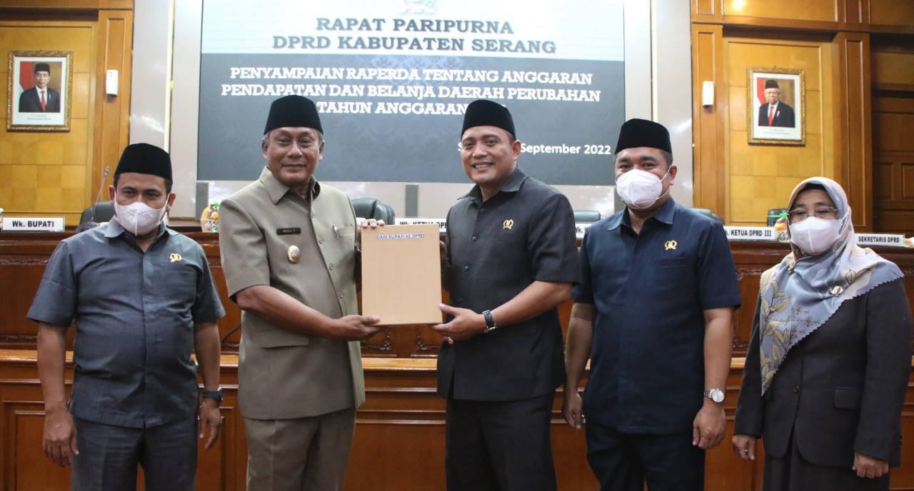 Rapat Paripurna DPRD Kabupaten Serang penyampaian Rancangan Peraturan Daerah atau Raperda tentang Anggaran Pendapatan Belanja Daerah Tahuan Anggaran Perubahan 2022 di Pimpin Ketua DPRD Bahrul Ulum, turut hadir para wakil ketua dan puluhan anggota DPRD serta Pejabat di lingkungan Pemkab Serang.[Ars]