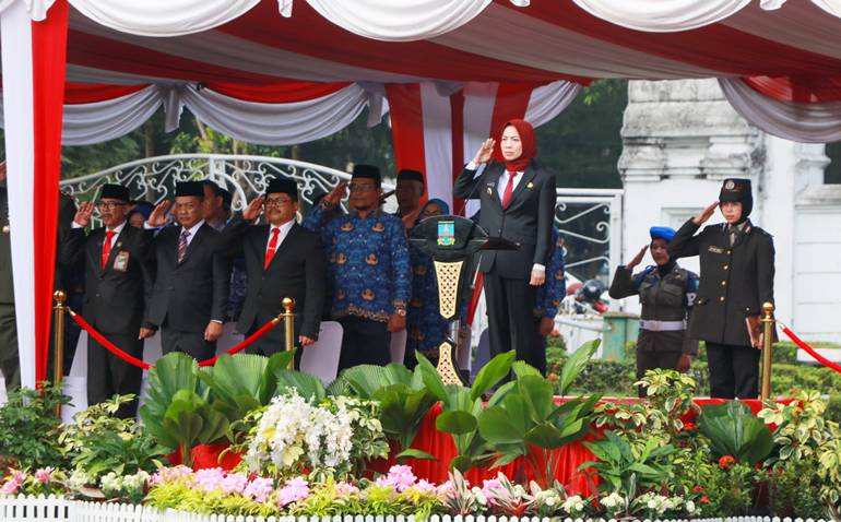 Bupati Ratu Rachmatuzakiyah bersama Wakil Bupati Muhammad Najib Hamas melaksanakan upacara hari lahir Pancasila bukan hanya sebatas acara seremonial.
