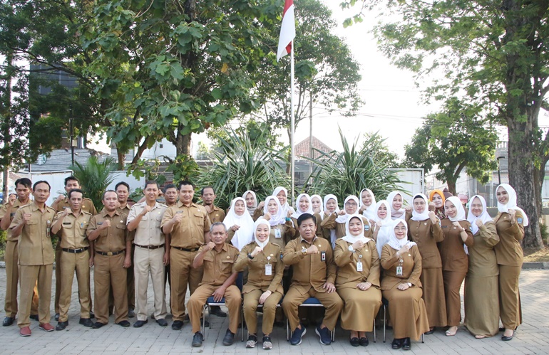 lBC, Serang - Jajaran Dinas Koperasi UMKM Perindustrian dan Perdagangan (Diskoumperindag) Kabupaten Serang melaksanakan Upacara Peringatan Hari Koperasi Nsional (Harkopnas) ke-75 di Halaman Diskoumperindag pada Selasa, 12 Juli 2022.