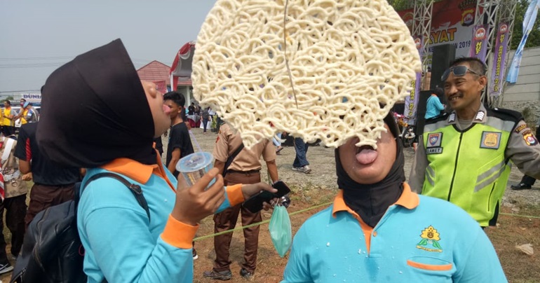 lBC, Serang - Memeriahkan HUT Bhayangkara ke-73, Kepolisian Resor (Polres) Serang menggelar pesta rakyat dan panggung hiburan. Pesta rakyat di lapangan terbuka Cikande Asem, Kecamatan Cikande, Kabupaten Serang pada Rabu, 10 Juli 2019 ini, diisi dengan berbagai perlombaan, diantaranya tarik tambang, panjat pinang, balap karung serta makan krupuk diikat.