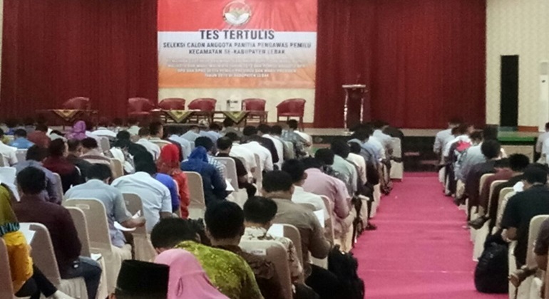 IBC, Lebak – Sekitar 338 peserta seleksi rekrutmen Panwascam di Kabupaten Lebak mengikuti test tertulis yang berlangsung di Hall La-Tansa Mashiro, Minggu 8-Oktober-2017. Jumlah tersebut berdasarkan hasil yang lolos seleksi administrasi yang dilakukan oleh panitia.