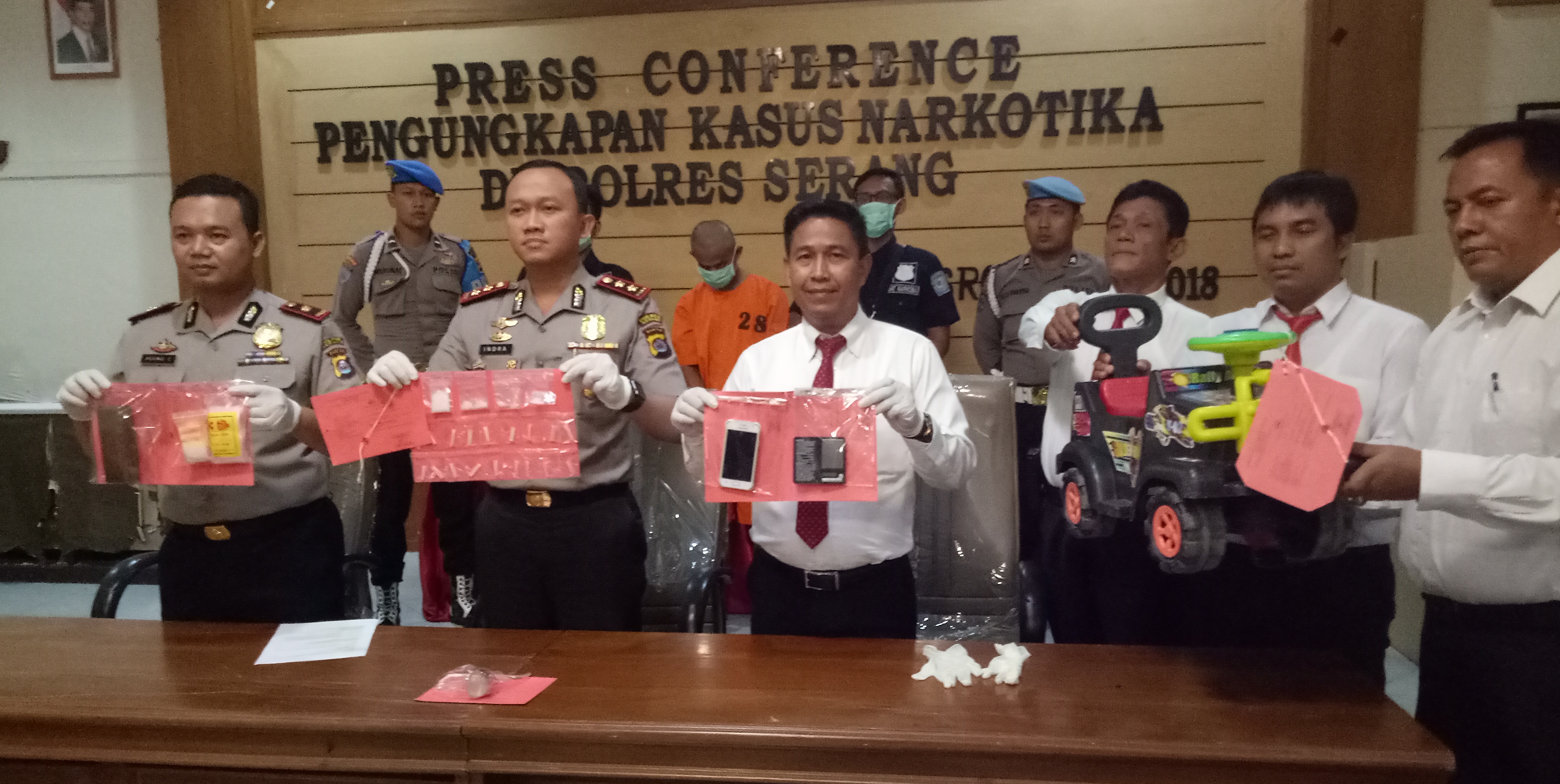 "Pada Sabtu siang petugas melakukan penyergapan di rumah kontrakannya. Dalam penggeladahan ditemukan puluhan paket sabu yang disembunyikan di dalam mobil mainan. Tersangka berikut barang bukti langsung diamankan untuk dilakukan pemeriksaan," terang Kapolres didampingi Wakapolres Kompol Agung Laksono, Kasat Resnarkoba AKP Nana Supriyatna dan Kaur Satresnarkoba Iptu Suheryanto.