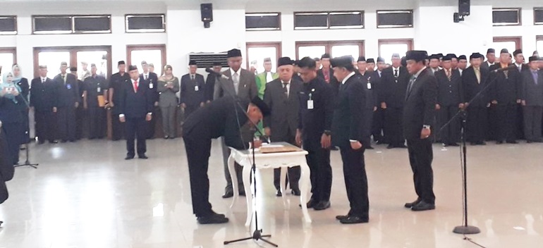 lBC, Tigaraksa - Moch. Maesyal Rasyid yang sering disapa Rudi Maesal resmi dilantik Bupati Tangerang A. Zaki Iskandar duduki jabatan Sekretaris Daerah (Sekda) Kabupaten Tangerang. Selain Sekda, Kepala badan pendapatan dearah juga dilantik dan diduduki oleh Soma Atmaja pada Senin, 2 Oktober 2017.