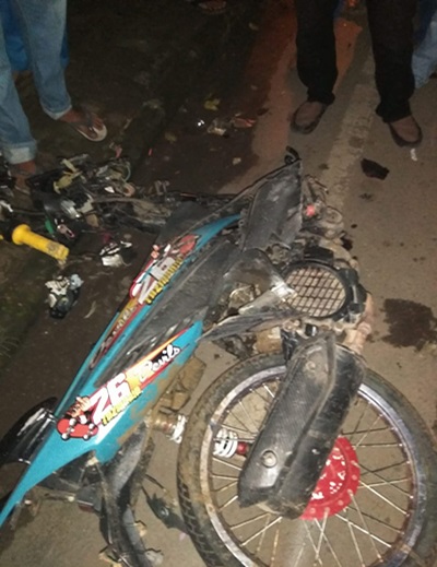 IBC, Lebak-Kecelakaan lalu lintas di wilayah hukum Kabupaten Lebak, tepatnya dijalan Oto Iskandar Dinata, Kampung Jujuluk, Kelurahan Muara Ciujung Timurm Kecamatan Rangkasbitung, Kabupaten Lebak, Sabtu 3-Februari-2018 sekira pukul 23.45 menyebabkan pengendara motor vario bernama Komarudin tewas meregang nyawa.
