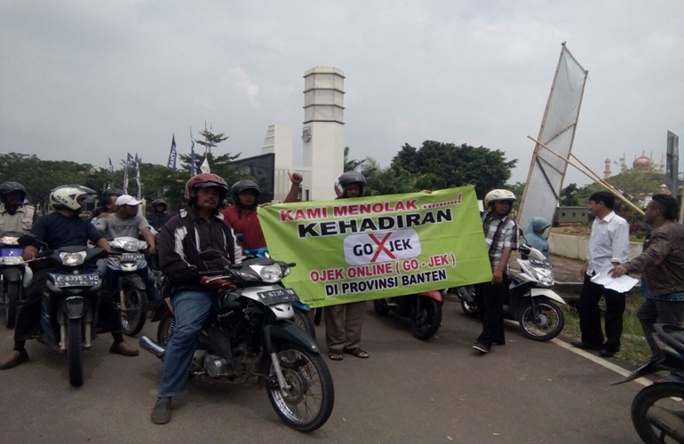 Kordinator Aksi, Amrul, mengatakan, Aksi demonstrasi tersebut untuk mempertanyakan legalitas gojek yang berkeliaran di Kota Serang. Ia menuding sampai saat ini belum ada Peraturan Daerah yang mengatur Gojek.